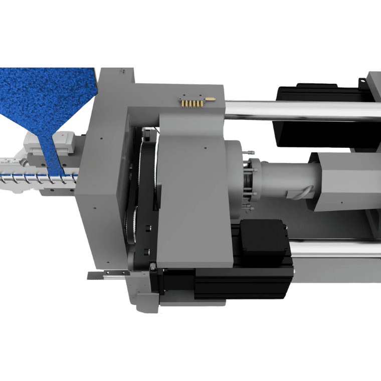 Esta injetora utiliza sistema servo-elétrico em todos os seus movimentos, proporcionando controle preciso e estável durante todo o ciclo de produção. O princípio de funcionamento baseia-se na conversão direta de energia elétrica em movimento mecânico, eliminando perdas típicas de sistemas hidráulicos e garantindo repetibilidade excepcional. A tecnologia totalmente elétrica permite movimentação linear rápida e estável, otimizando ciclos de produção e assegurando alta consistência dimensional nas peças injetadas.